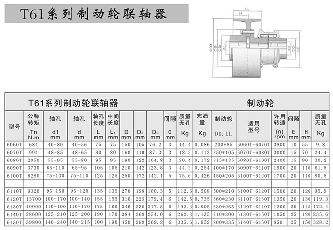 瑞安市寶德隆機械配件有限公司提供T61系列制動輪聯軸器具有拆裝方便,快速安裝等特點,廣泛用于連接/固定輪轂孔和零件的軸,例如齒輪,錐齒輪,鏈輪,葉輪,凸輪,皮帶輪和飛輪等軸的聯結固定,咨詢電話:18906872378
