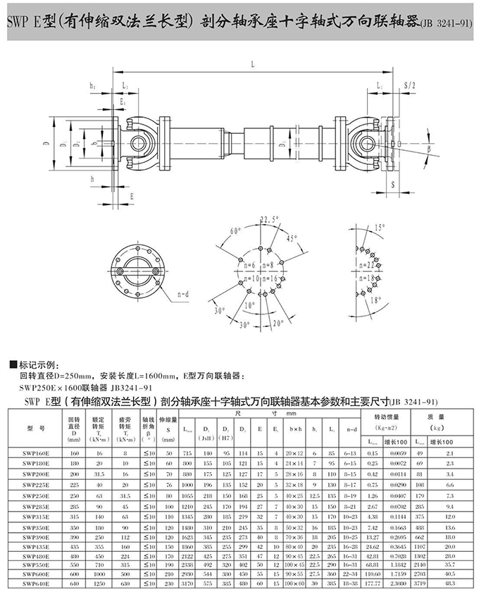 瑞安市寶德隆機械配件有限公司提供SWP E型(有伸縮雙法蘭長型)部分軸承座十字軸式萬向聯軸器具有拆裝方便,快速安裝等特點,廣泛用于連接/固定輪轂孔和零件的軸,例如齒輪,錐齒輪,鏈輪,葉輪,凸輪,皮帶輪和飛輪等軸的聯結固定,咨詢電話:18906872378
